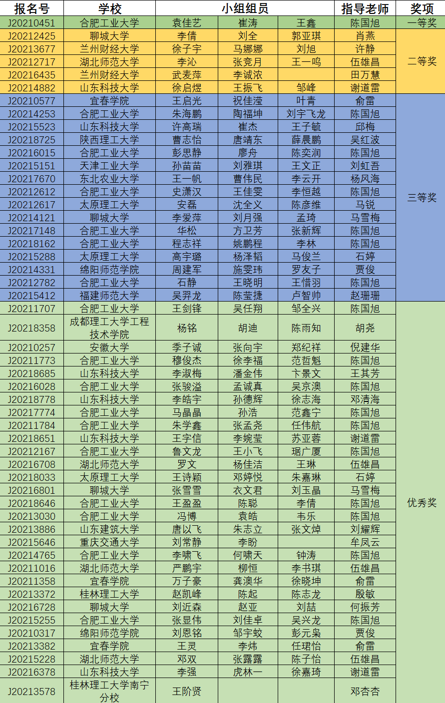 遥感组获奖名单