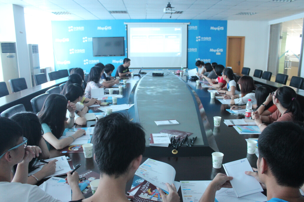 会上,中地高校合作支持部工作人员从企业概况、产品体系和社会责任等角度出发,对集团进行了介绍。尔后,对全国高校GIS技能大赛的介绍将会场的氛围推向了一个高潮,许多与会同学参加过2014年的竞赛活动,并取得了优异的成绩,他们表示,将会继续关注本届大赛,并向学弟学妹们进行推广,提供参赛的经验。