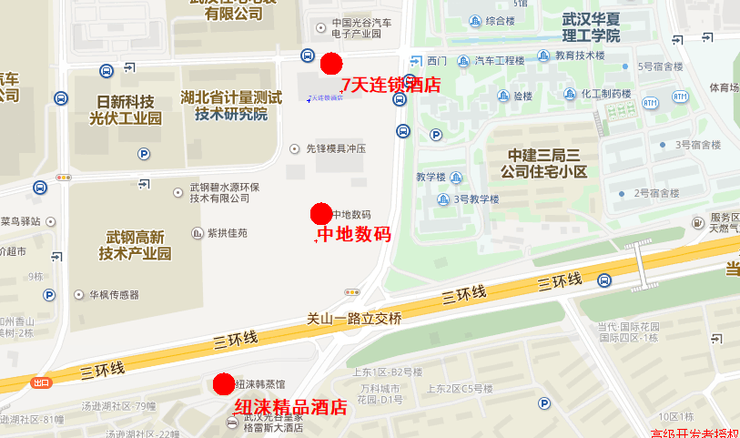 (1)纽涞精品酒店(万科城市花园对面),距离中地科技园500米。